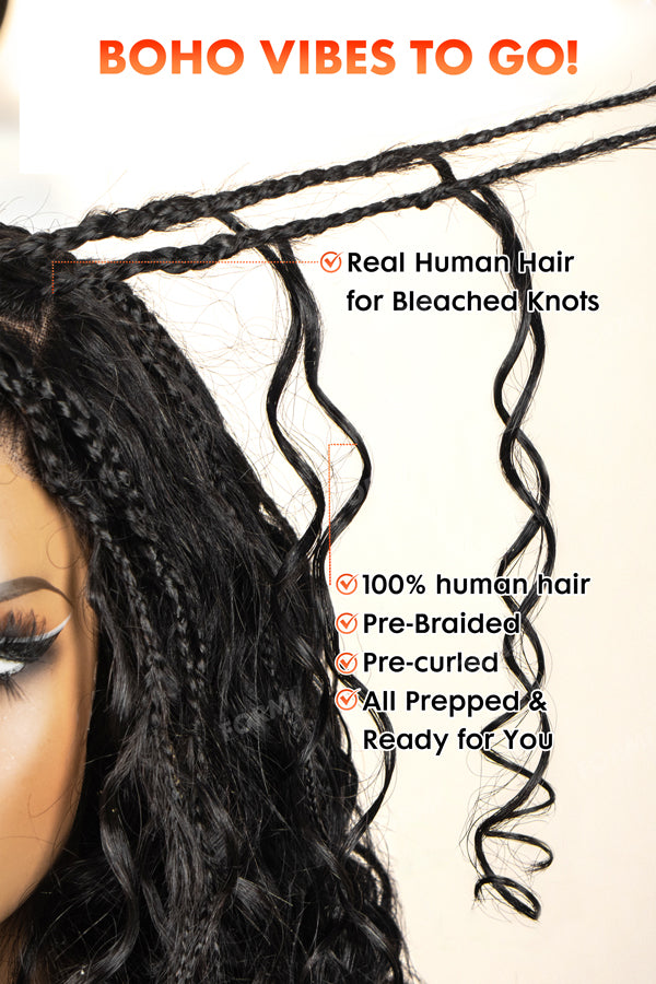 100% Human Hair Boho Braid Wig 4x6 HD Glueless Wig Pre-Everything Wig